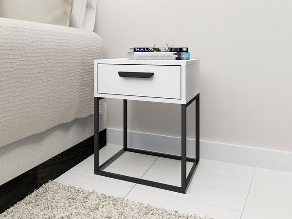 Industriálny nočný stolík so zásuvkou Cepys 3 je štýlovým doplnkom do vašej spálne. Mierne surový charakter nábytku podčiarkuje módny vzhľad celého interiéru. Kombinácia funkčného úložného priestoru s kovovou základňou je hitom obľúbeným aj v obývačke, predsieni a chodbe. Vďaka všestrannému využitiu je nočný stolík ideálny ako na skladovanie, tak aj na dekoráciu miestnosti. Horná doska stola je ideálnym miestom na umiestnenie dekoratívnych doplnkov, črepníkových kvetov alebo stojacej lampy. Pri večernom čítaní poslúži ako miesto na odloženie okuliarov alebo knihy.