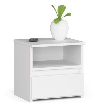 Nočný stolík Crispian (biela) je štýlový a praktický kúsok nábytku pre vašu spálňu. S rozmermi výška 40 cm, šírka 40 cm a hĺbka 35 cm, tento stolík je ideálny ako nočný stolík pri posteli. Jeho biela farba pridáva do miestnosti sviežosť a eleganciu. S dostatočným úložným priestorom vo forme jedného zásuvky a otvoreného regálu, môžete na ňom uschovať svoje obľúbené knihy, brýle či telefón. Nočný stolík Crispian (biela) je vyrobený z kvalitných materiálov, čo zaručuje dlhú životnosť a odolnosť produktu. Svojou jednoduchosťou a funkčnosťou je tá správna voľba pre vás, ak hľadáte moderný a praktický kúsok nábytku do svojej spálne.