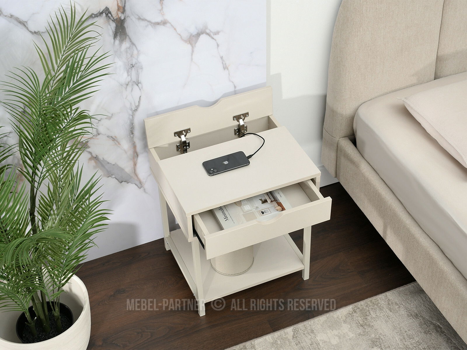 Nočný stolík Entrevista (krémová)