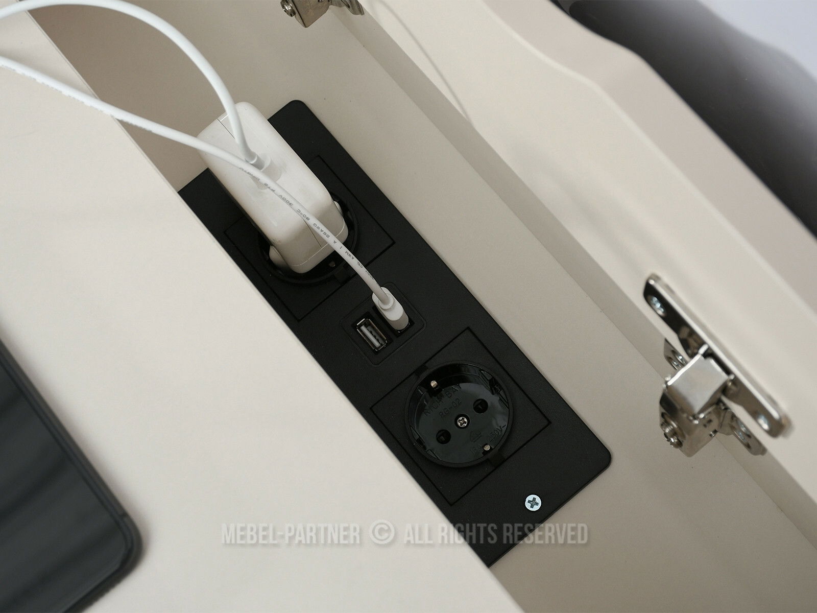 obdĺžniková stolová doska, s poličkou, so zásuvkou, vstavané elektrické zásuvky, USB port