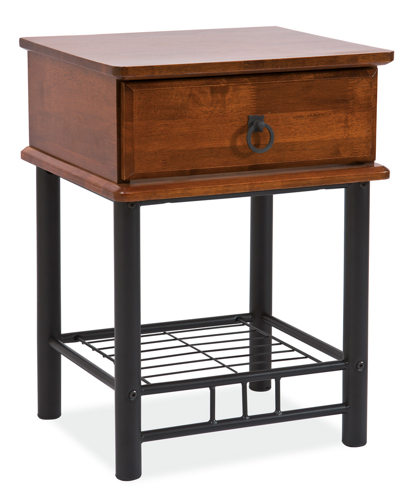 Vkusný nočný stolík ET-747 v rustikálnom štýle sa hodí do podobne ladenej spálne. Stolík je z dreva vo farbe tmavého orecha a kovová konštrukcia je čiernej matnej farby. V spodnej časti sa navyše nachádza rebrovaný odkladací priestor.
