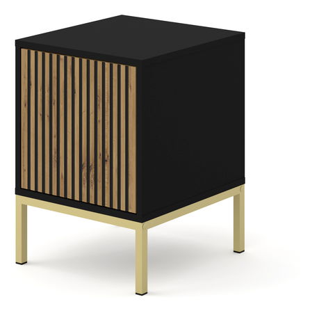 Nočný stolík F 1D Rowanna (čierna + dub artisan + zlatá)