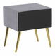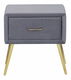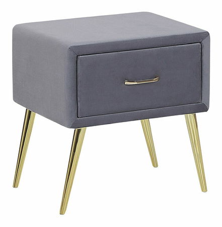 S týmto nočným stolíkom vytvoríte vo svojej spálni očarujúcu atmosféru. Stolík je vyrobený z odolného zamatu, ktorý sa ľahko udržiava, a vďaka svojmu dizajnu určite upúta pozornosť. Sivú farbu čalúnenia dopĺňajú zlaté nohy vyrobené zo železa, ktoré zaisťujú stabilitu. Zásuvku, ktorá je súčasťou stolíka, možno využiť ako odkladací priestor na knihy či iné drobnosti.
