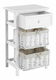 Usporiadajte si priestor v spálni a vedľa postele umiestnite tento funkčný a štýlový nočný stolík. Tento praktický kus nábytku poskytuje dostatok úložného priestoru vďaka zásuvke a dvom úložným košíkom, ktoré sú jeho súčasťou. Košíky sú vystlané mäkkým a odolným materiálom v príjemnej béžovej farbe. Stolík je možné doplniť rôznymi doplnkami a ozdobami a skrášliť tak celkový vzhľad vašej spálne.