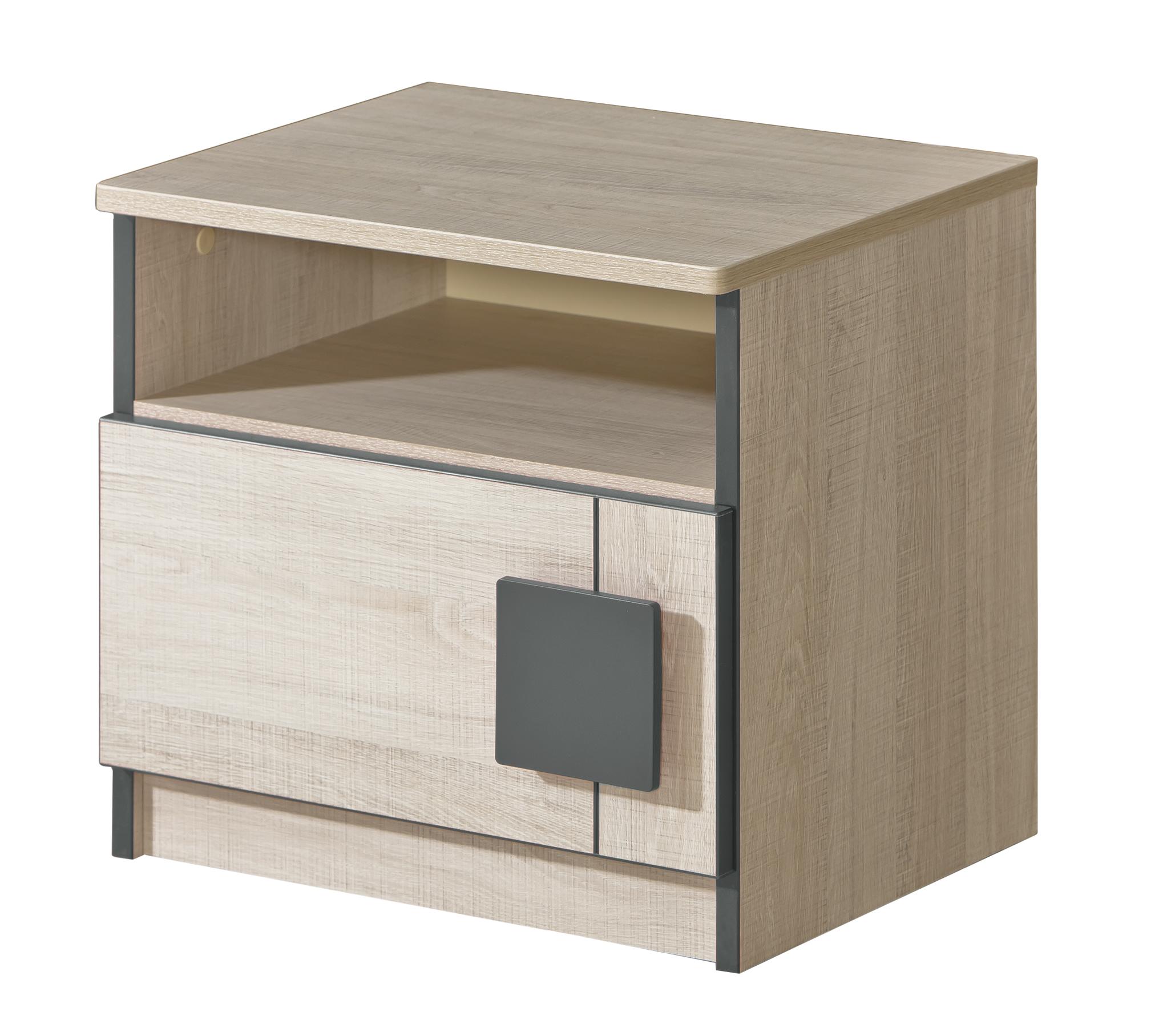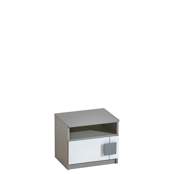 Pohár s vodou, knižka, či časopis - všetko môžete mať po ruke s týmto praktickým nočným stolíkom. Nočný stolík má otvorenú poličku a dvierka s veľkým štvorcovým úchytom.