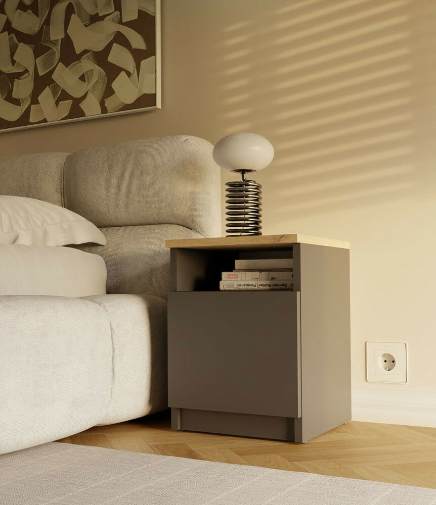 Nočný stolík Gustaban 2 je praktickým a estetickým doplnkom každej spálne, ktorý kombinuje moderný dizajn s funkčnosťou. S jeho elegantným antracitovým korpusom a dubom artisan na vrchu, sa skvele hodí do rôznych interiérových štýlov. Stolík ponúka otvorenú poličku a uzavretý priestor za bezúchytovými dverami, čo umožňuje pohodlné uskladnenie kníh, telefónov či iných drobností. Systém TIP-ON zabezpečuje jednoduché otváranie, zatiaľ čo kvalitné materiály a precízne spracovanie garantujú dlhú životnosť. Tento nočný stolík je ideálnym riešením pre tých, ktorí hľadajú spojenie estetiky a praktickosti.