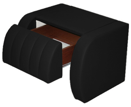 Luxusný nočný stolík s moderným dizajnom je vhodným doplnkom do Vašej spálne. Je vyrobený z čiernej ekokože. Okrem odkladacieho priestoru v hornej časti, ponúka aj jednu zásuvku. Odporúčame kombinovať s posteľou Lago.