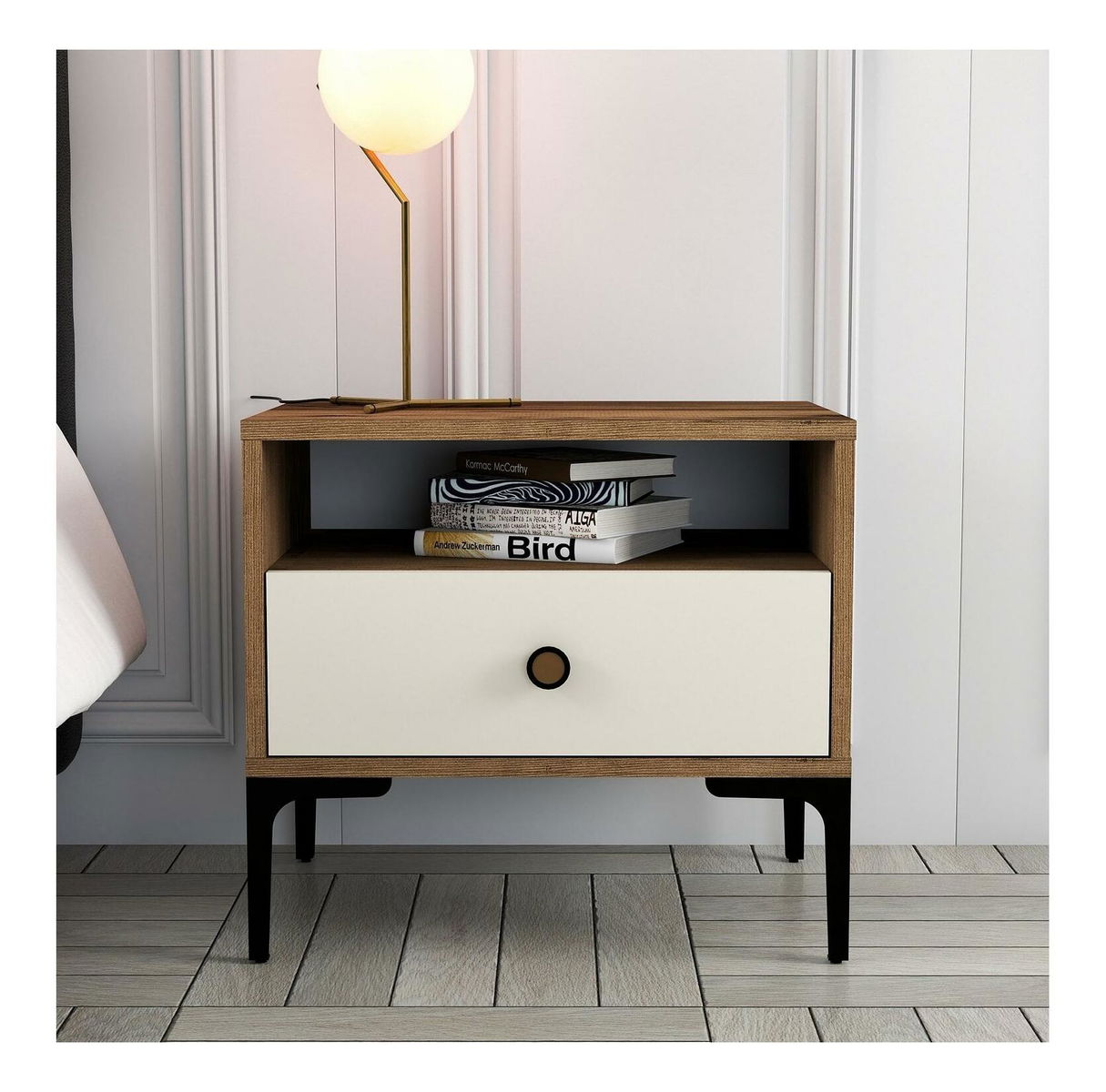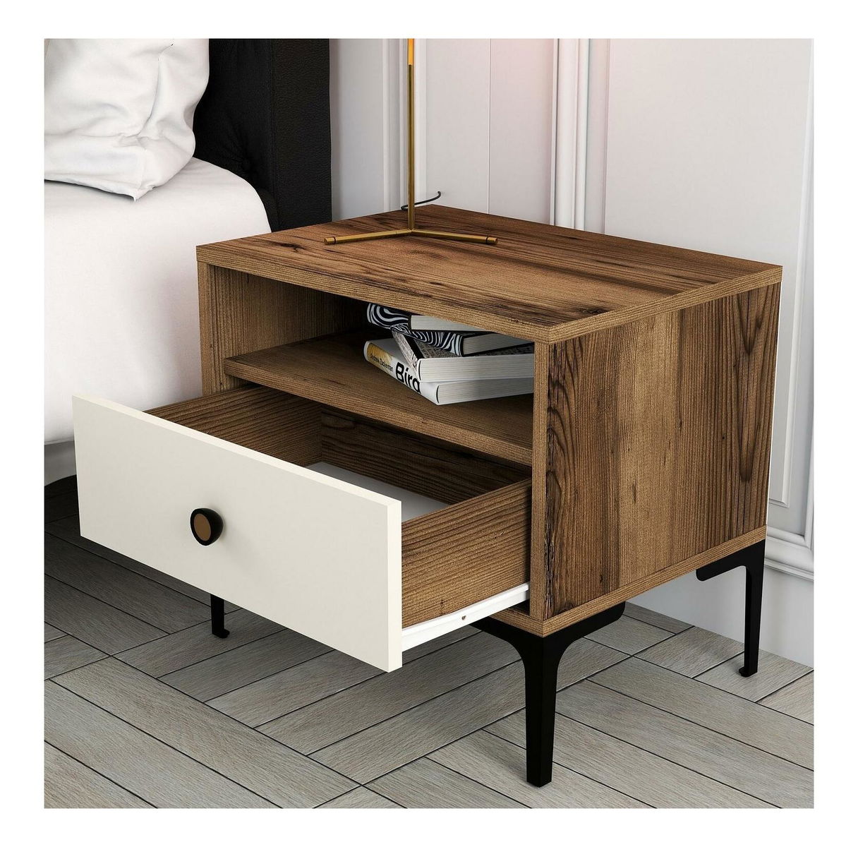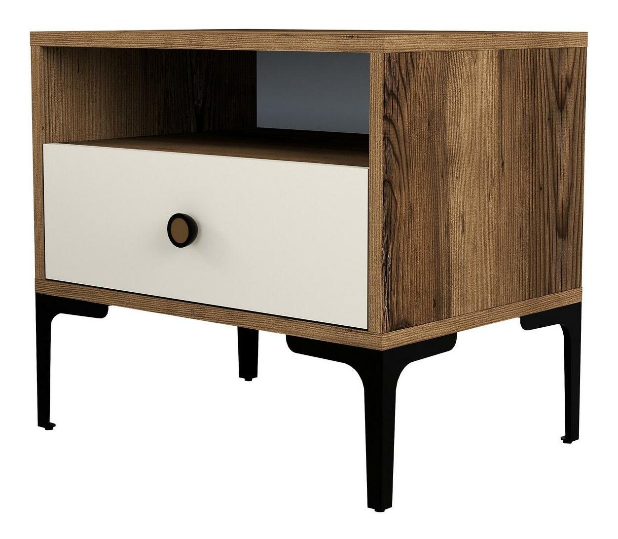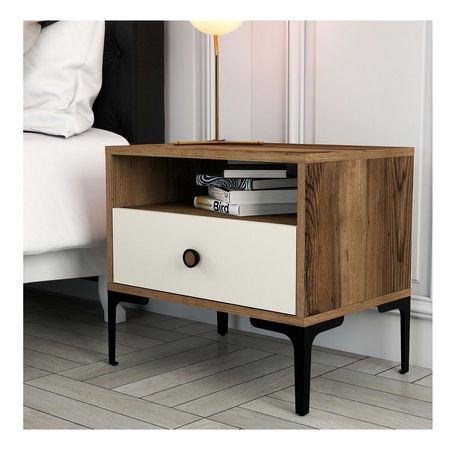 Nočný stolík Logan (orech + krémová)
