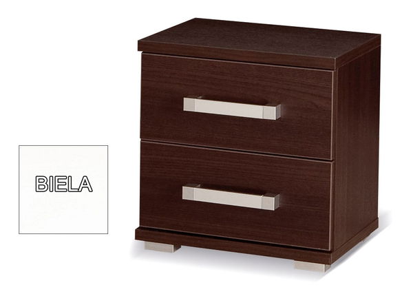Atraktívny a elegantný nábytok, ktorý jedinečným spôsobom vyplní Váš interiér. Prvky z tohto modelového radu vďaka modernému dizajnu a farbe dreva spravia z Vášho bytu jedinečné miesto. Nábytok je vyrobený z laminovanej dosky, ktorá je chránená 2mm ABS hranou. Hrúbka dosky korpusu je 22 mm a frontov 16 mm. Pri vitrínach je použitá strieborná MDF doska. V posteliach je namiesto roštu s lamelami použitá doska.