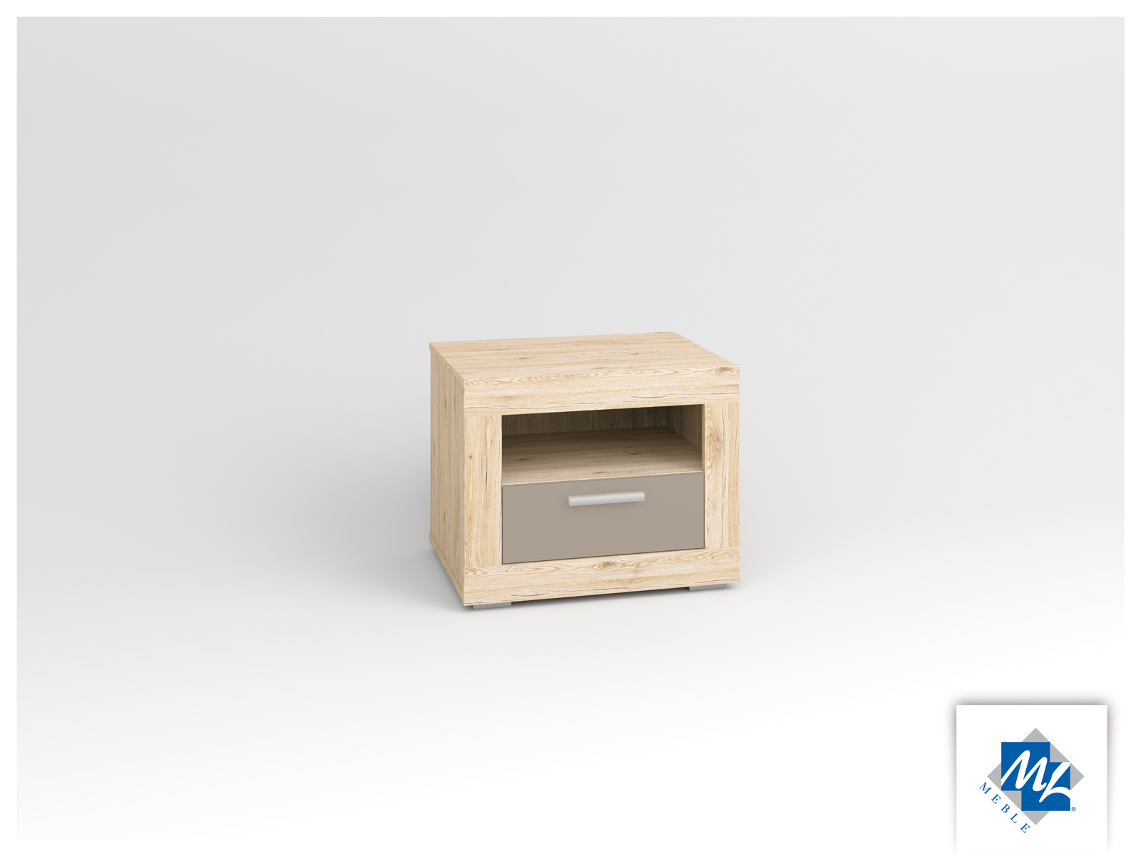 Praktický nočný stolík so zásuvkou a otvoreným odkladacím priestorom.