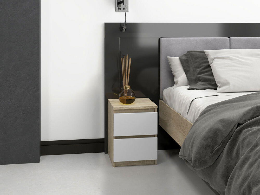 Nočný stolík Musecalo 2 v elegantnej kombinácii dub sonoma a biela je ideálnym doplnkom do každej spálne, kde sa kladie dôraz na moderný dizajn a funkčnosť. S minimalistickou konštrukciou a bezúchytkovými frontami zásuviek poskytuje nielen praktický úložný priestor pre okuliare, knihy či telefón, ale aj esteticky príjemný vzhľad. Vyrobený z kvalitnej laminovanej drevotriesky s odolnými okrajmi, tento stolík zaručuje dlhú životnosť a jednoduchú údržbu. Musecalo 2 je skvelou voľbou pre tých, ktorí ocenia spojenie štýlu a praktickosti.
