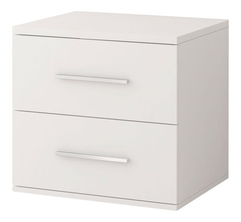 Nočný stolík Oleg I (biela) je moderné a minimalistické zariadenie s výškou 51 cm, šírkou 55 cm a hĺbkou 44 cm. Je vyrobený z drevotriesky s hrúbkou 16 mm a má ABS hrany s hrúbkou 0,5 mm. Jeho strieborné plastové úchyty pridávajú elegantný dotyk. Tento stolík nie je vybavený nožičkami, ale má 2 zásuvky, čo poskytuje praktický úložný priestor pri posteli. Nočný stolík Oleg I je ideálnym doplnkom vášho interiéru, ktorý kombinuje jednoduchosť a funkčnosť.