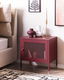 Tento štýlový nočný stolík v trendovej tmavočervenej farbe a modernom dizajne je skvelým doplnkom do spálne. Je vyrobený z ocele s práškovou povrchovou úpravou a má praktické dvierka z kovovej sieťoviny, ktoré mu dodávajú sofistikovaný vzhľad. Ponúka dodatočný úložný priestor na rôzne drobnosti a možno naň umiestniť nočnú lampu.