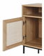 Nočné stolíky nemusia byť nudné a jednotvárne. Tento nočný stolík s dvierkami z prírodného ratanu je štýlovým kúskom, ktorý do vašej spálne vnesie nádych boho štýlu. Možno naň položiť nočnú lampu alebo ho využiť ako úložný priestor na obľúbené knihy, ktoré chcete mať poruke. Čierne kovové nohy príjemne kontrastujú s farbou svetlého dreva a zaručujú výbornú odolnosť a stabilitu.