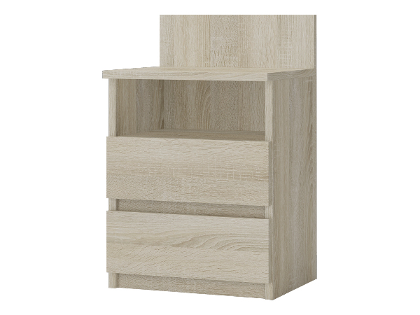 Nočný stolík Ponta 1 (dub sonoma) s výškou 59 cm a hĺbkou 32 cm je ideálny ako praktický odkladací priestor pre knihu, pohár s vodou alebo okuliare. Stolík má otvorenú poličku a dve zásuvky s guľôčkovým výsuvom pre pohodlné ukladanie vecí. Fronty sú bez úchytov a boky sú hladké bez záslepiek. Vyrábaný je z laminovanej drevotriesky. Rozmery balenia sú 12x58x37 cm. S týmto nočným stolíkom budete mať vždy všetko po ruke a Váš spálni dodá moderný nádych.