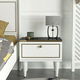 Nočný stolík - Ravy, s výškou 47,2 cm, šírkou 50 cm a hĺbkou 34,8 cm, je vynikajúcim doplnkom pre vašu spálnu. Jeho biela farba a zlaté detaily vytvárajú elegantný vzhľad, ktorý sa hodí k akejkoľvek nábytkovej zostave. Stolík je vyrobený z kvalitnej 100% melamínovej dosky, ktorá zaručuje dlhú životnosť a jednoduchú údržbu. Vďaka praktickým úložným priestorom, ktoré sú dostatočne veľké na uchovanie kníh, časopisov alebo iných vecí, je Ravy stolík skvelou voľbou pre každého, kto potrebuje praktické a zároveň štýlové riešenie pre svoju spálňu.