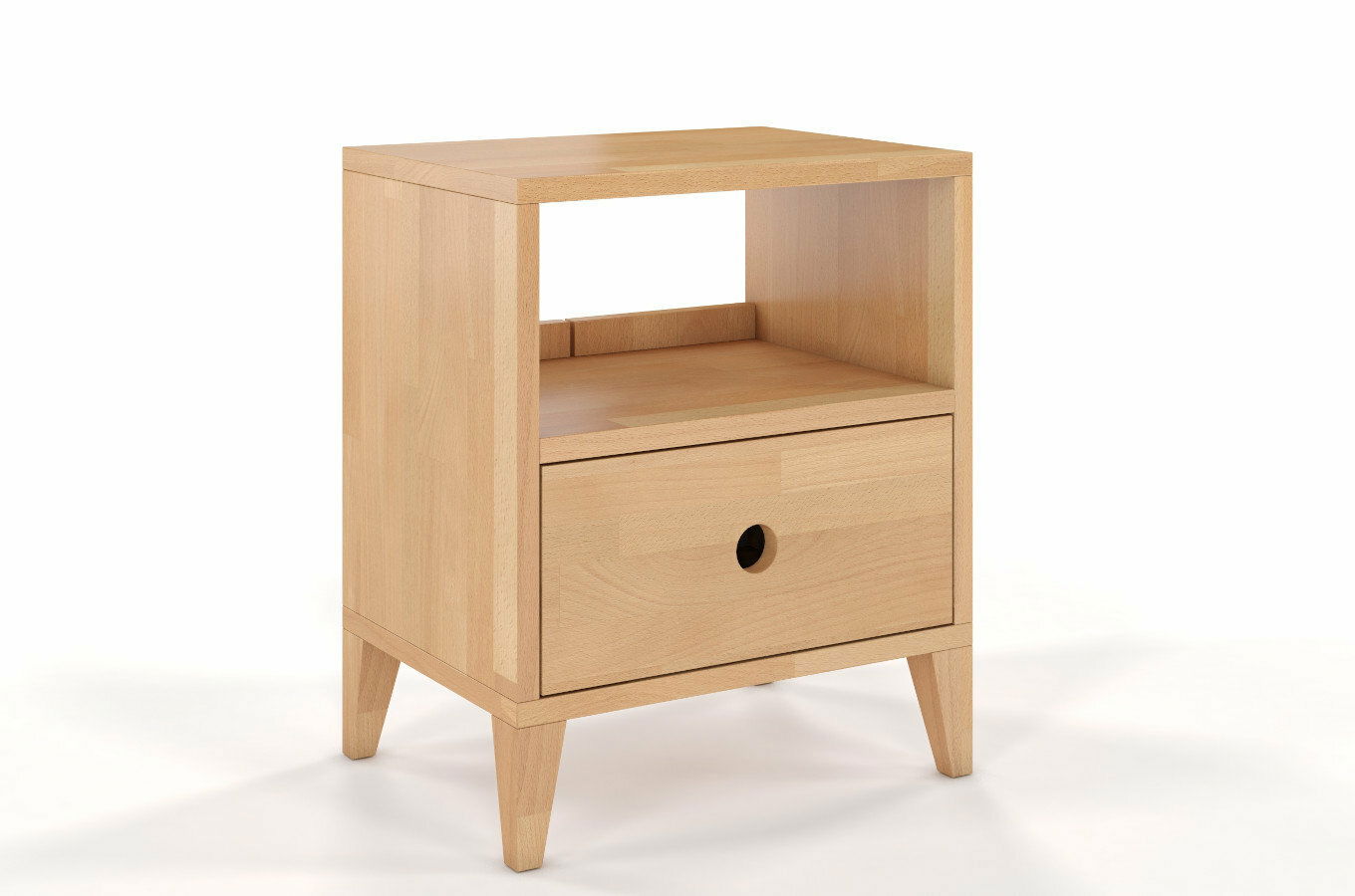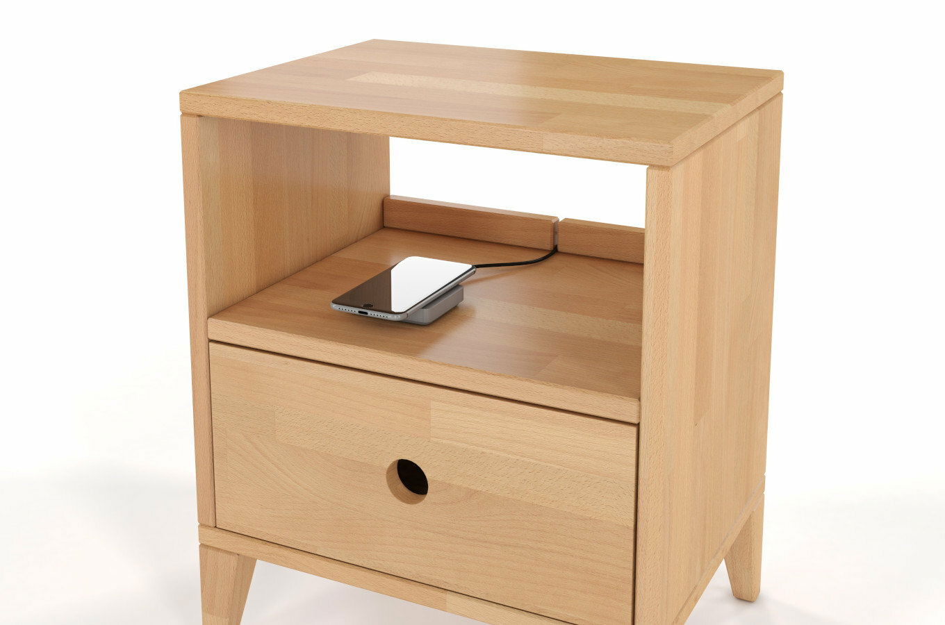 ZobraziťNočný stolík Scandinavian (buk) je moderný, ľahký a nevtieravý nočný stolík, ktorý sa výborne hodí do každej spálne. Vďaka svojim praktickým rozmerom s výškou 50 cm a hĺbkou 35 cm sa hodí aj do menších priestorov. Stolík disponuje zásuvkou a otvorenou policou s lištou zabraňujúcou pádu predmetov. V strede poličky sa nachádza otvor pre kábel nabíjačky, čo je veľmi praktické. Korpus nočného stolíka Scandinavian je vyrobený z masívneho bukového dreva, ktoré je prstovo spájané a skrutkované. Vysoká kvalita použitých surovín zaručuje odolnosť a dlhodobé používanie nábytku. Nočný stolík je dostupný v dvoch farebných prevedeniach a doporučujeme ho kombinovať s posteľou z rovnakého radu. Výška nožičiek je 10 cm, výška police je 17 cm a výška čela zásuvky je 16,5 cm. Farby na obrázku sa môžu mierne líšiť od skutočných vzhľadom na nastavenie monitora a individuálne vlastnosti daného kusu dreva.