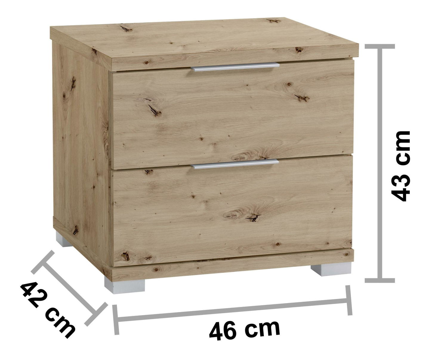 ZobraziťModerný a minimalistický nočný stolík Serafina 1 si isto nájde miesto aj vo Vašej spálni. V prevedení dub artisan s 2 zásuvkami spolu so sivými úchytkami a nožičkami zapadne do väčšiny štýlov interiérov a poslúži ako praktické odkladné a úložné miesto pre všetky vaše predmety či dekorácie. Svojou jednoduchosťou a nadčasovosťou Vás nočný stolík Serafina jednoducho okúzli!