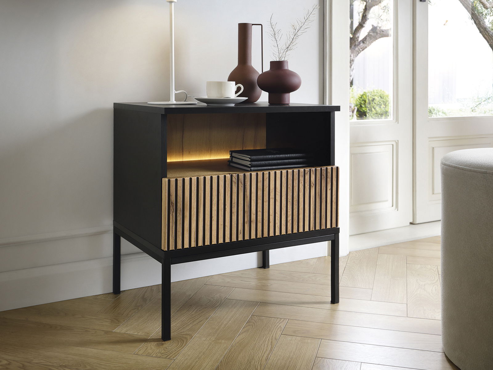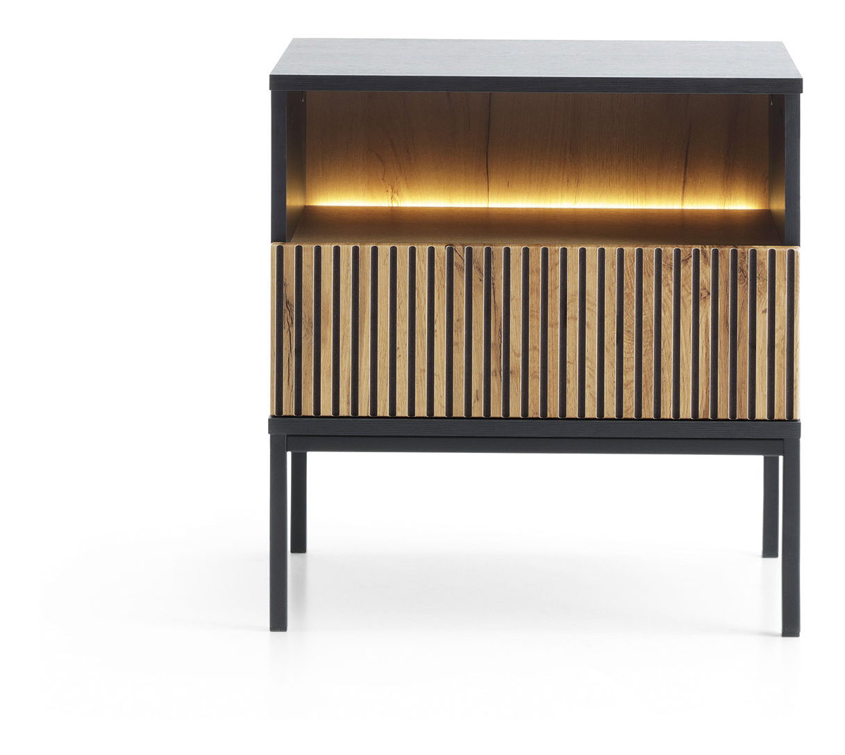 Nočny stolík Silvano S54 (čierna + dub wotan) (s LED osvetlením)