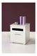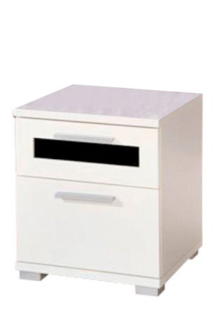 Nočný stolík s dvomi zásuvkami je vhodné kombinovať s komodami z modelovej rady Solido. Vrchné čelo zásuvky je s čiernym sklom. Vyrábaný je z fóliovanej DTD bielej farby.