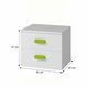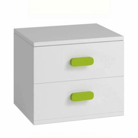 Jednoduchý nočný stolík vhodný do detských a študentských izieb. Stolík má dve zásuvky s farebnými úchytmi.