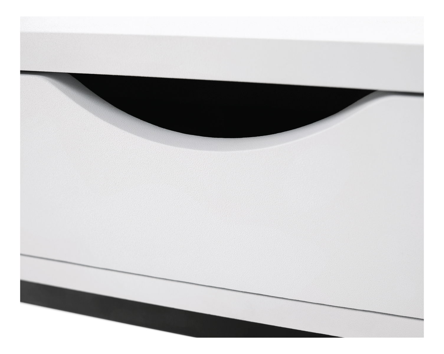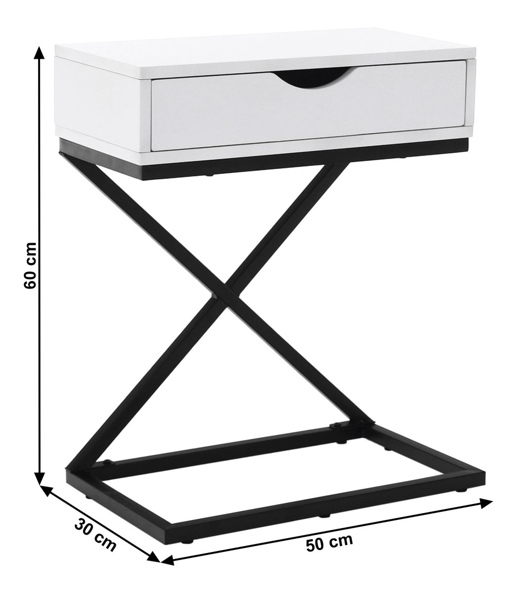 Stolík, ktorý by nemal chýbať v žiadnej poriadnej domácnosti? Malý kus nábytku, ktorý dokáže zmeniť dizajn celej miestnosti? To je moderný stolík Variad. Multifunkčný pomocník, ktorý dokáže zastať funkciu nočného či príručného stolíka. Vrchná časť je vyrobená z MDF s povrchovou úpravou s PVC fóliou v bielom prevedení. Stabilitu zabezpečuje čierna kovová podstava. Stolík disponuje jedným šuplíkom, ktorý je s praktickým otvorom namiesto klasickej úchytky. Nenahraditeľný pomocník, ktorý neostane bez povšimnutia.