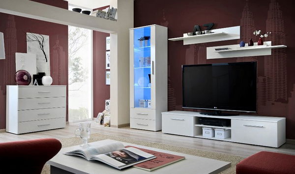 Obývacia izba Galino B je zložená z piatich prvkov a je vhodná do menších priestorov. Svojim dizajnom a jednoduchosťou však skvele zapadne do interiéru obývacej izby. TV skrinka má dvoje dvierka, na ktorých sú elegantné, 25 cm dlhé uchyty. V strednej časti je otvorený priestor na uloženie audio/video príslušenstva. Vysoká vitrína má sčasti presklené dvere a v dolnej časti dve zásuvky. Obsahuje tri sklenené, LED osvetlením podsvietené poličky. Samostatné poličky na stenu ponúkajú ďalší odkladací priestor na maličkosti. Presklené časti sú vyrobené z číreho tvrdeného skla. Nízka komoda obsahuje štyri praktické zásuvky.