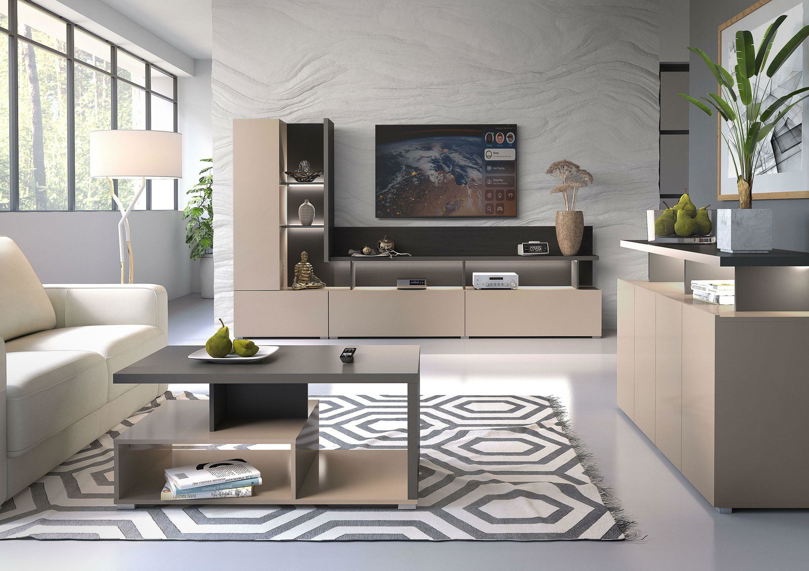 Obývacia izba Orsire 1 v kombinácii tmavého dekoru congo a elegantného antracitu prináša do interiéru výraznú charizmu a mestský štýl s industriálnym nádychom. TV stolík, komoda aj konferenčný stolík tvoria kompaktný a vyvážený celok, ktorý pôsobí premyslene a moderne. Hladké povrchy v kontraste s robustným dizajnom vytvárajú vizuálnu hĺbku a súčasne poskytujú dostatok úložného aj odkladacieho priestoru. Táto zostava je ako stvorená pre tých, ktorí majú radi veci pod kontrolou, oceňujú praktickosť, no zároveň túžia po interiéri, ktorý pôsobí suverénne a štýlovo. Orsire 1 je riešenie s charakterom.