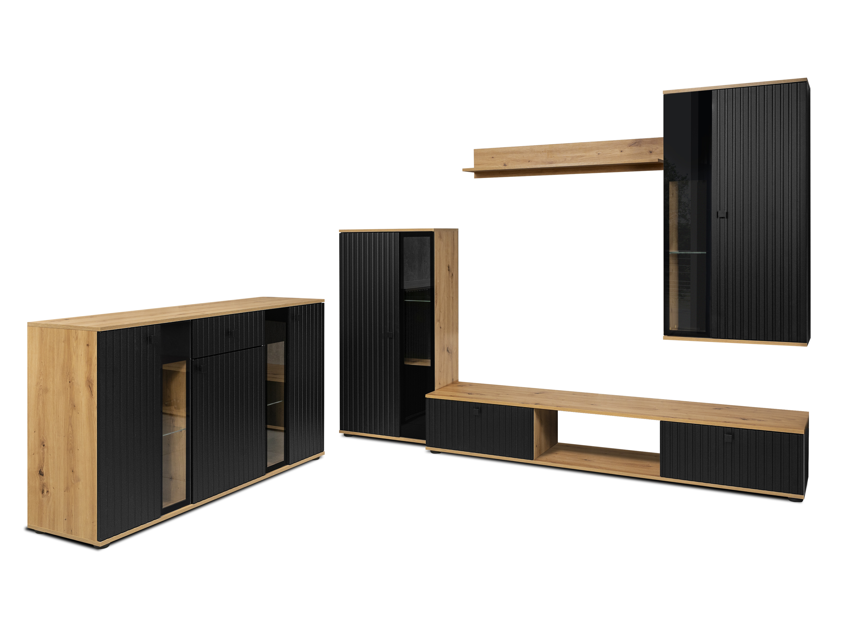 Obývacia izba Saul (čierna + dub artisan) (bez osvetlenia)