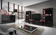 Moderná obývacia stena v elegantnom farebnom prevedení. Svojim dizajnom sa hodí do moderného domova. Nadčasový dizajn môže byť doplnený o efektné LED osvetlenie, ktoré zvýrazní línie jednotlivých prvkov. Je vyrobená z laminovaných dosiek LTD hrúbky 15 mm. Obývacia stena pozostáva z TV stolíka a dvoch zrkadlovo otočených vitrín. TV stolík má otvorené miesto so sklenenou poličkou a výklopne dvierka, za ktorými je úložný priestor oddelený priečkou. Vitrína sa skladá z dvoch častí. Komoda s dvierkami, vo vnútri ktorej je jedna sklenená a jedna drevená polička. Na túto komodu sa umiestni nadstavba s piatimi sklenenými poličkami. V prípade, že si chcete doplniť úložný priestor, priobjednajte si priestrannú komodu.