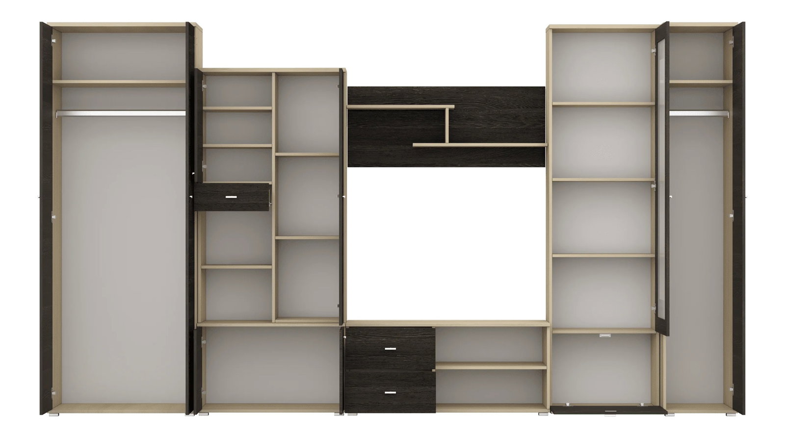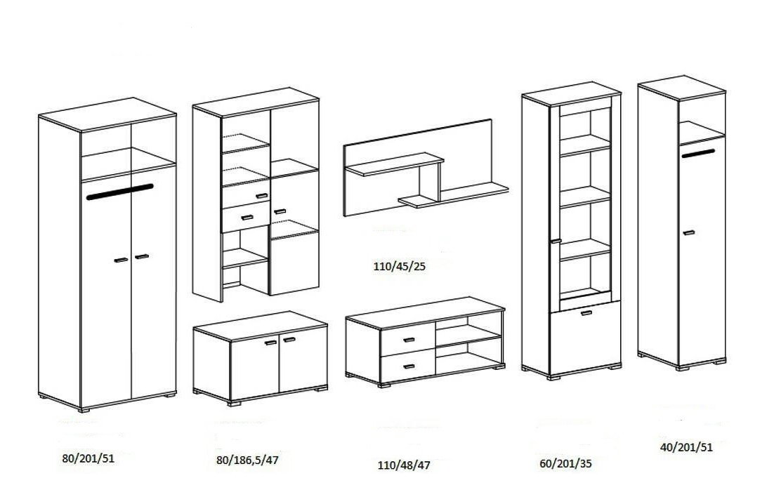 Obývacia stena Arves v odtieňoch jaseň a dub canterbury je výbornou voľbou pre tých, ktorí hľadajú moderný a funkčný nábytok do svojho obývacieho priestoru. S výškou 201 cm a hĺbkou 51 cm táto stena poskytuje dostatok úložného priestoru a skladovacích možností. Súčasťou steny je šatníková skriňa (201 x 80 x 51 cm), policová skriňa (186,5 x 80 x 47 cm), TV stolík (48 x 110 x 47 cm), polička (45 x 110 x 25 cm), vitrína (201 x 60 x 35 cm) a úzka šatníková skriňa (201 x 40 x 51 cm). Vonkajší materiál steny je vyrobený z drevotriesky s hrúbkou 16 mm, vnútorný materiál je tiež z drevotriesky s rovnakou hrúbkou. ABS hrany s hrúbkou 0,5 mm dodávajú stene dokonalý vzhľad. Úchyty sú vyrobené z PCV a nožičky sú vyrobené z plastu.