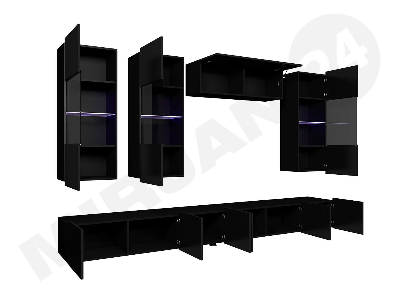 - Obývacia stena Badiani V (čierna + čierny lesk + biely lesk)