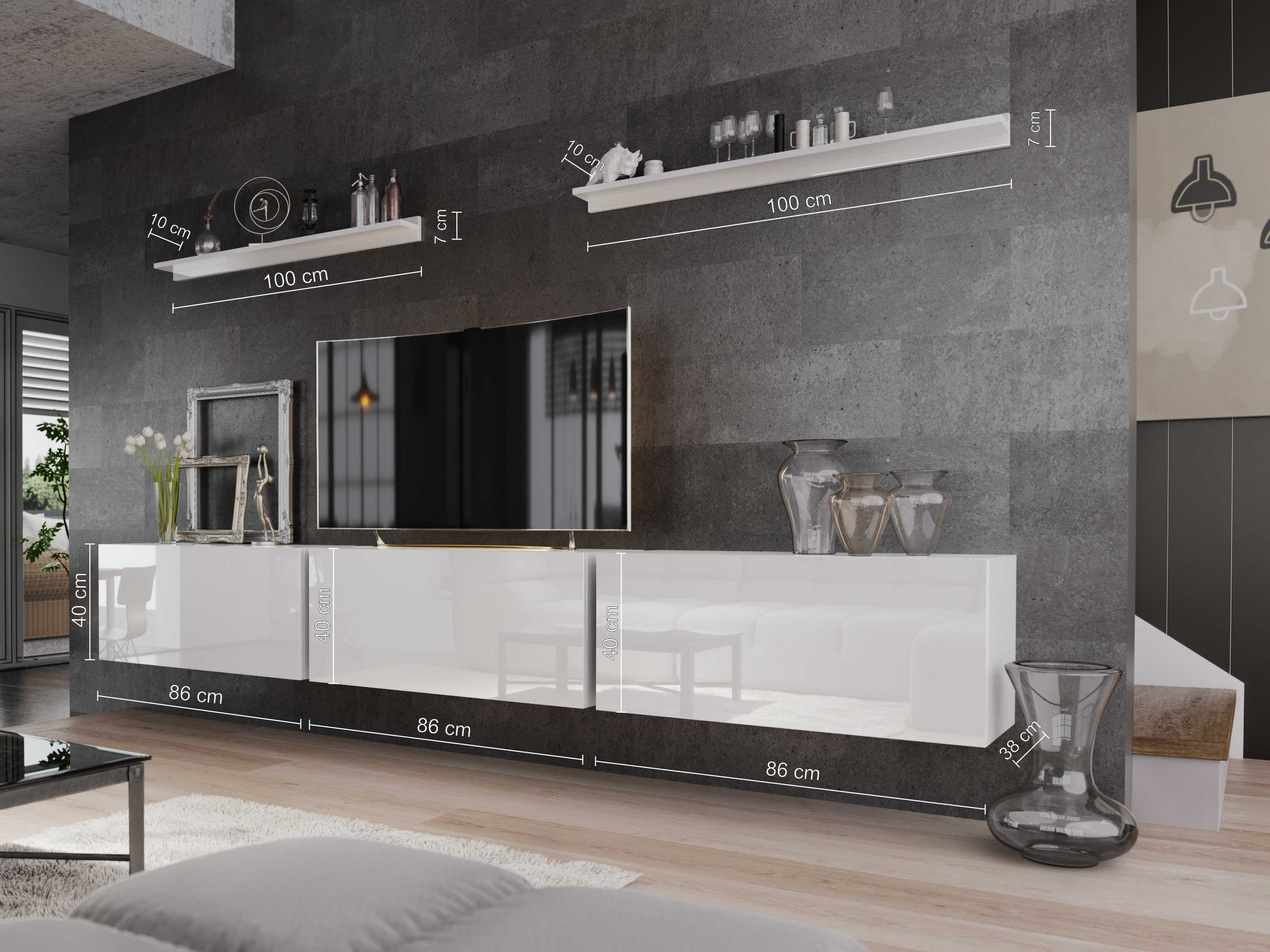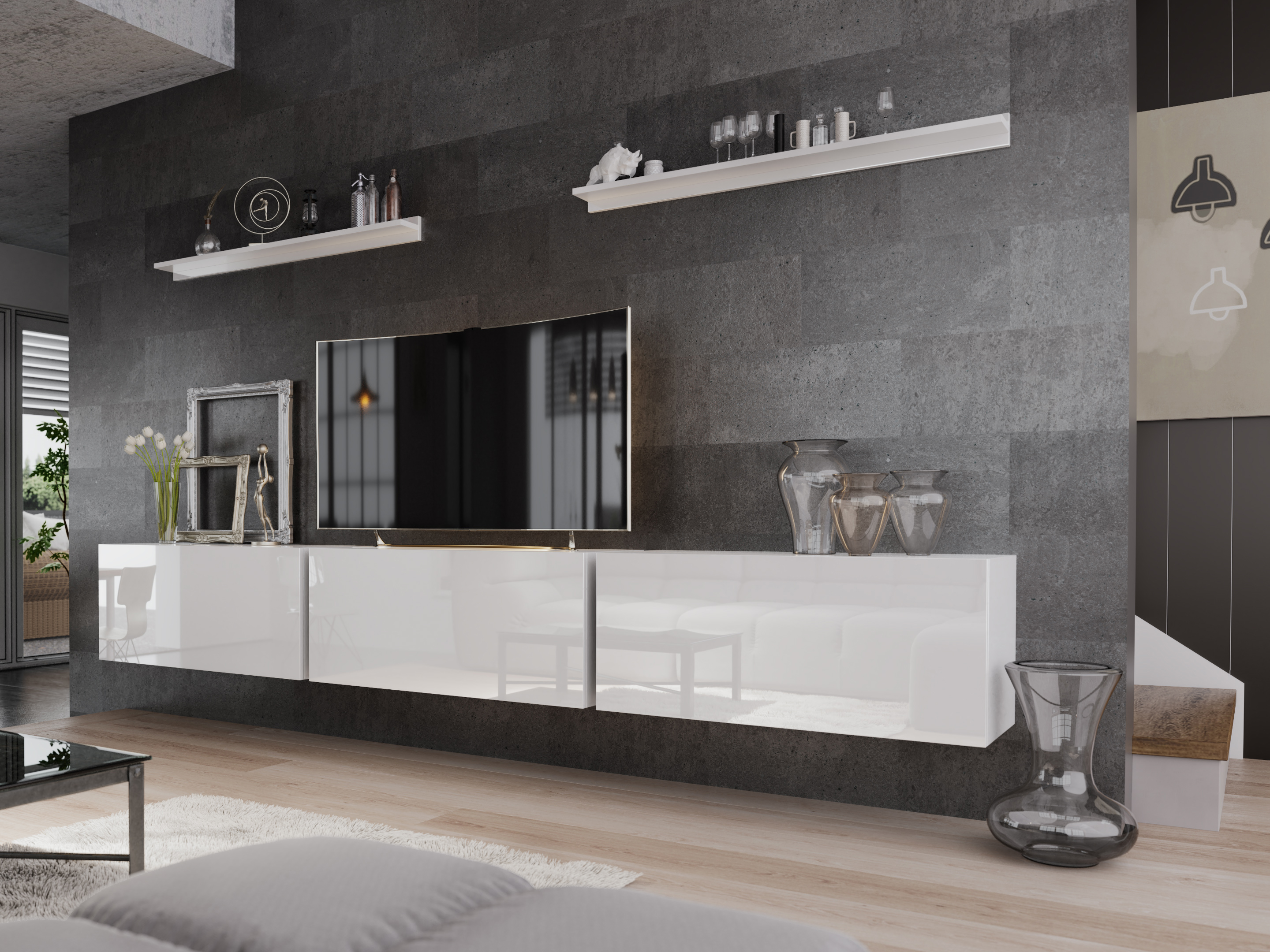 Obývacia stena Balldy je moderný kúsok nábytku, ktorý určite zaujme každého milovníka minimalistického dizajnu. Je dostupná v bielom prevedení s lesklým povrchom, ktorý sa hladko odráža a dodáva miestnosti jas a sviežosť. Otvárací systém PUSH TO OPEN je samozrejmosťou a zaručuje pohodlné a jednoduché použitie bez potreby kľúča. Osvetlenie je k dispozícii za príplatok a dokonale dotvára atmosféru. Nožičky sú tiež k dispozícii za príplatok a umožňujú ľahkú a pohodlnú údržbu podlahy pod stenou. Balldy je skvelou voľbou pre tých, ktorí hľadajú praktické a elegantné riešenie pre svoju obývaciu izbu.