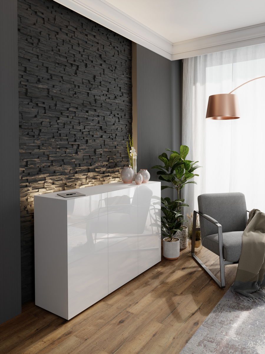 Obývacia stena Berny je kombináciou najdôležitejších prvkov v obývacej izbe. Okrem funkčnosti obývacej steny je potrebné venovať pozornosť aj jej vzhľadu. Všetky dvierka sa otvárajú dômyselným PUSH-CLICK systémom, kedy stačí jemne zatlačiť pre otvorenie alebo opätovné zatvorenie dvierok. K tejto obývacej stene je možnosť zakúpenia LED osvetlenia. Nábytok má dve možnosti montáže: môžete ju umiestniť na stenu, opticky zväčšiť priestor, pridať jej ľahkosť alebo ju umiestniť na podlahu pomocou nožičiek.