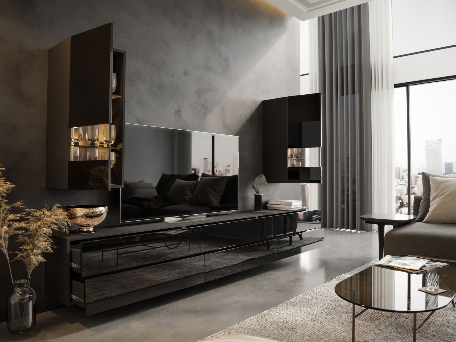 Obývacia stena Berny 46 (čierna + čierny lesk)