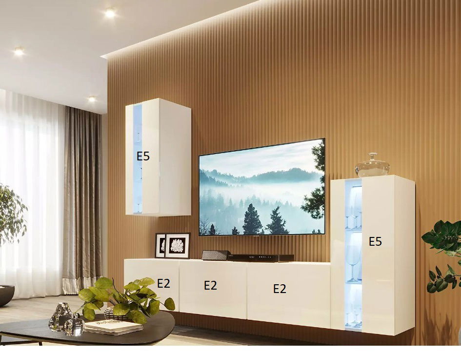 Obývacia stena Berny v čiernom lesku je ideálnou kombináciou funkčnosti a dizajnu pre vašu obývaciu izbu. Dvere sú vybavené dômyselným PUSH-CLICK systémom, ktorý zabezpečuje pohodlné otváranie a zatváranie. Súčasťou steny je aj možnosť zakúpenia LED osvetlenia, ktoré ešte viac zvýrazní jej eleganciu. Stenu môžete namontovať na stenu, čím opticky zväčšíte priestor, alebo ju umiestniť na podlahu pomocou nožičiek. Stenu tvoria skrinky, závesná polica a vitríny, ktoré sú vyrobené z kvalitného materiálu. Fronty sú z MDF lakovanej dosky a korpus je z drevotriesky s hrúbkou 16 mm. Rozmery jednotlivých komponentov steny sú uvedené nižšie.