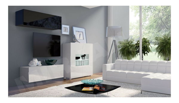 - Obývacia stena Bralani IX (lesk čierny + lesk biely) (bez osvetlenia) *výpredaj