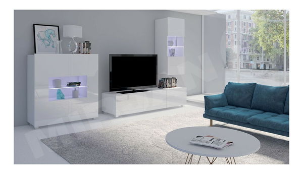 Obývacia stena Bralani VII sa skladá až z 3 elementov, ako sú RTV skrinka, závesná vitrína a komoda. Dvierka obývacej steny sú vyrobené vo vysokom lesku v klasických farebných prevedeniach biela a čierna. Skrinky nemajú úchytky. Ďalšou možnosťou je LED osvetlenie, ktoré krásne osvetlí interiér miestnosti. TV skrinku je možné pripevniť ako závesnú skrinku po namontovaní nožičiek ju môžete použiť ako stojaciu skrinku. Všetky elementy je možné umiestniť tak, ako Vám to vyhovuje. Obývacia stena Bralani VII je vyrobená vo vysokej kvalite elementov a materiálov.
