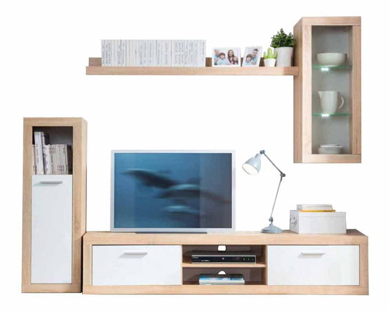 Obývacia stena BRW Mitch (biela + dub sonoma) (bez osvetlenia)