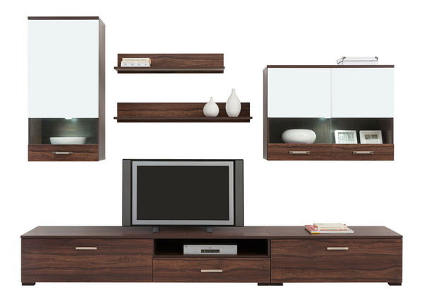 Systém Neyo je veľmi pekná a moderná obývacia stena, ktorá obsahuje dve visiace skrinky s presklenými časťami, dve poličky a TV stolík, ktorý je rozdelený na dve časti. Obývacia stena je vyrobená z kvalitných materiálov a jej efektnosť môžete potvrdiť dokúpením efektného LED osvetlenia, ktoré je možné doobjednať v našom internetovom obchode.