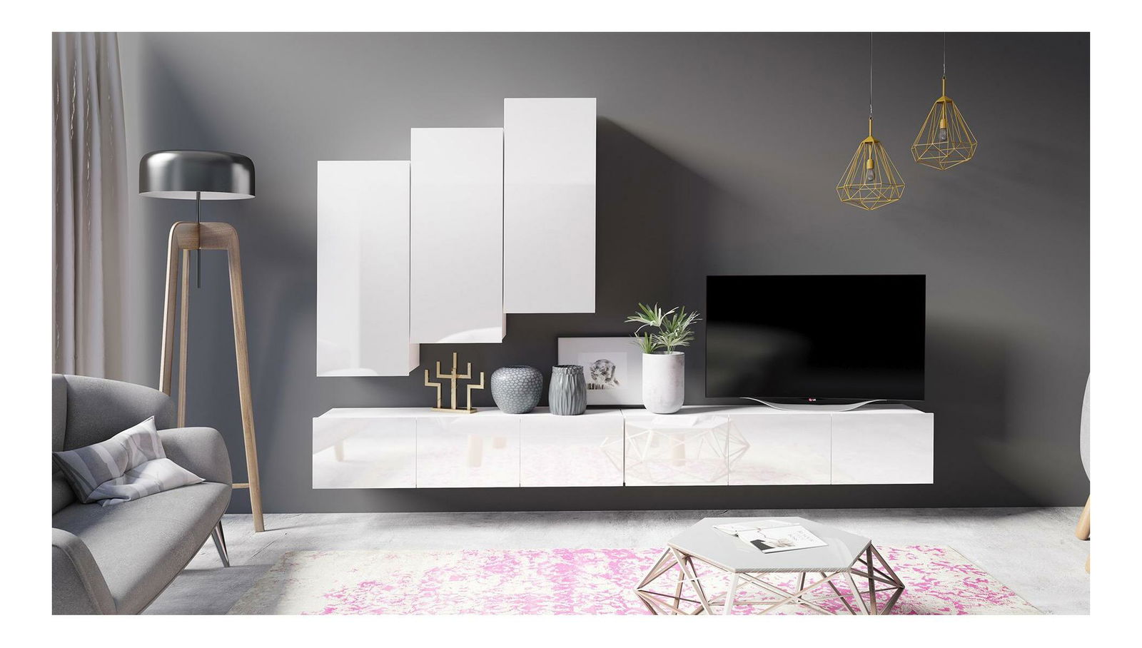 Obývacia stena Calabria 1 (biela matná + lesk biely)