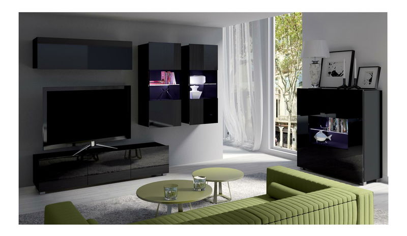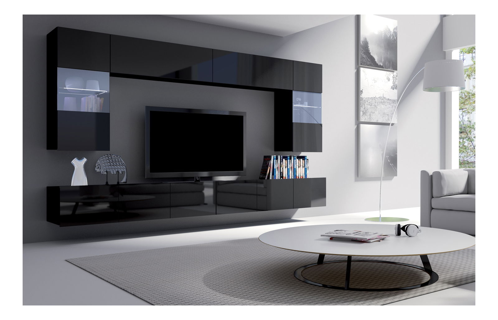 Obývacia stena Calabria C1 (čierna) (bez osvetlenia)