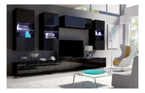 Obývacia stena Calabria C11 (čierna) (bez osvetlenia)