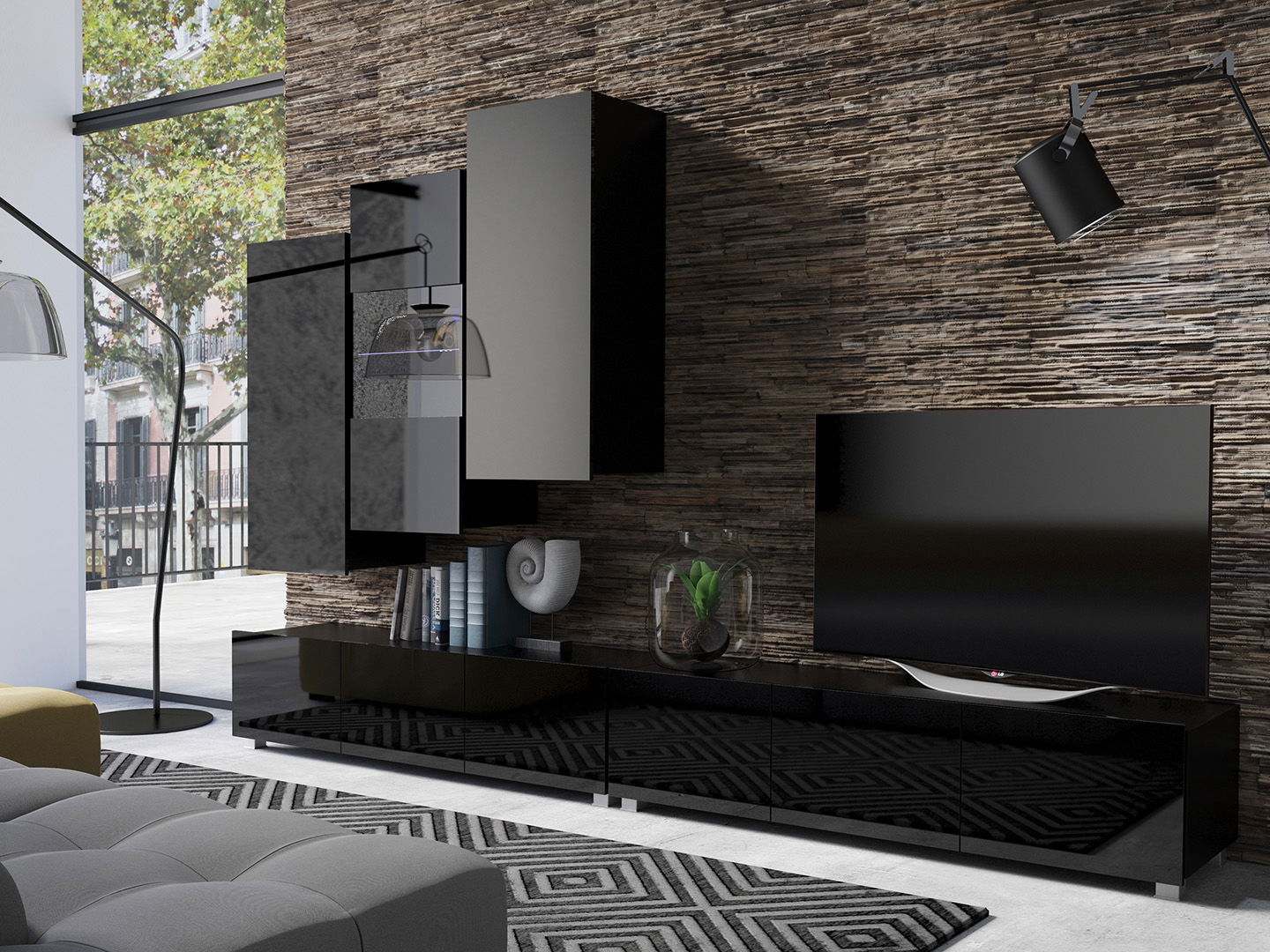 Obývacia stena Calabria C17 (čierna) (bez osvetlenia)