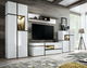 Obývacia stena Carlyn 1 (biela matná + brest perlový + vysoký lesk biely) (s osvetlením)