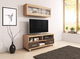 Táto jednoduchá, moderná obývacia stena bude spestrením vašej obývačky. Jej súčasťou je TV stolík a polička. Je to obývacia stena, ktorá je ideálna aj do menších interiérov. Získať ju môžete vo farbe javor alebo javor-amari. Úchyty a nožičky sú zase v príjemnom zlatom prevedení. Nájdete v nej dostatok úložného priestoru na vaše audio/video prehrávače alebo nosiče.