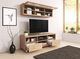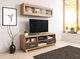 Táto jednoduchá, moderná obývacia stena bude spestrením vašej obývačky. Jej súčasťou je TV stolík a polička. Je to obývacia stena, ktorá je ideálna aj do menších interiérov. Získať ju môžete vo farbe javor alebo javor-amari. Úchyty a nožičky sú zase v príjemnom zlatom prevedení. Nájdete v nej dostatok úložného priestoru na vaše audio/video prehrávače alebo nosiče.