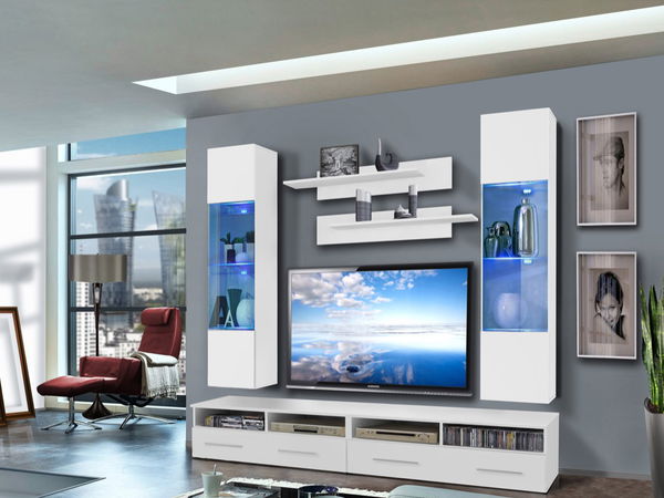 Jednoduchý a moderný dizajn obývacej steny je doplnený o systém push-click, ktorý je využitý pri vitríne. Obývacia stena je doplnená o LED podsvietenie.