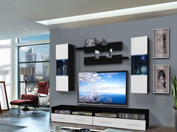 Jednoduchý a moderný dizajn obývacej steny je doplnený o systém push-click, ktorý je využitý pri vitríne. Obývacia stena je doplnená o LED podsvietenie.