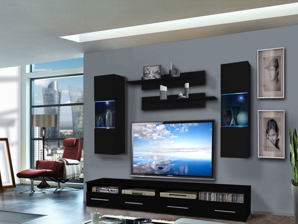 Jednoduchý a moderný dizajn obývacej steny je doplnený o systém push-click, ktorý je využitý pri vitríne. Obývacia stena je doplnená o LED podsvietenie.